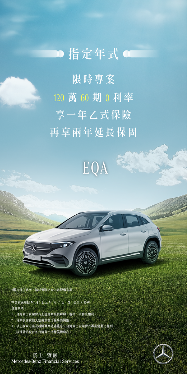 EQA 指定年式 享 120 萬/60 期 0 利率優惠方案