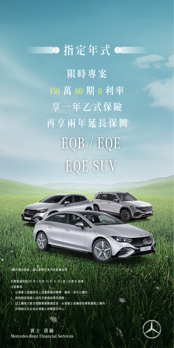 「電動七人座,不妥協的家庭旅程」 EQB 指定年式 享 150 萬/60 期 0 利率優惠方案