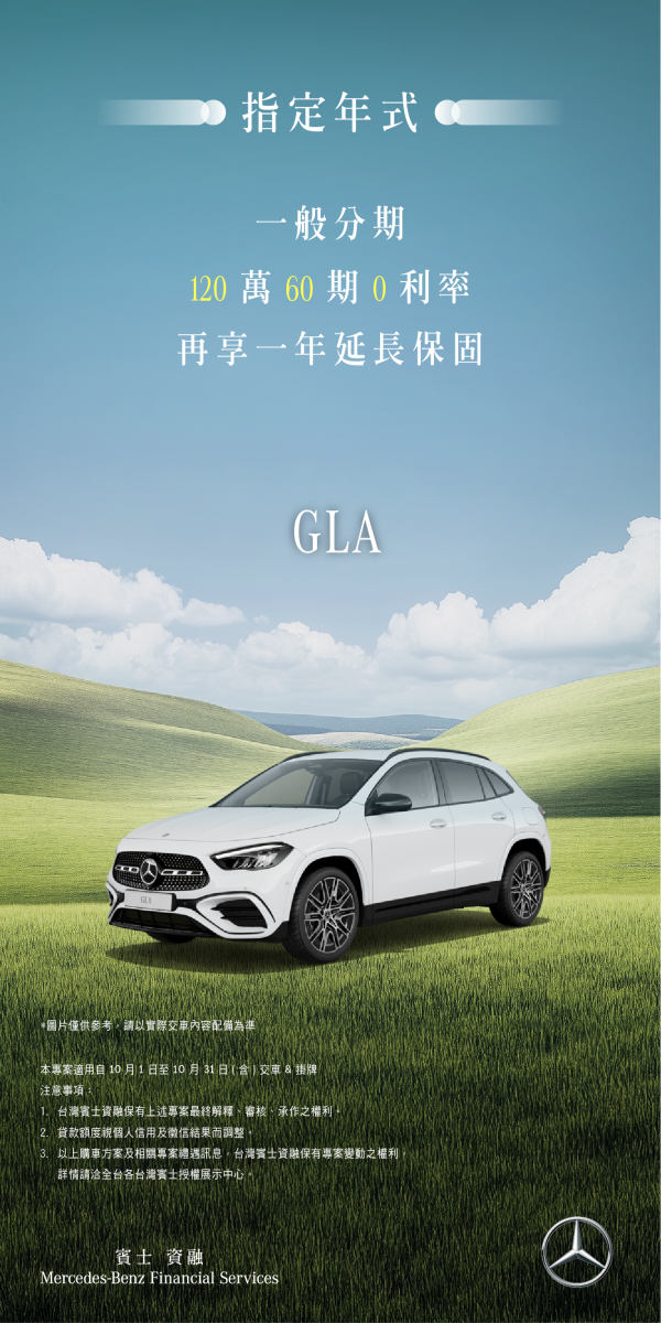 「靈活由你,星動都會生活隨行」 GLA 指定年式 享 120 萬/60 期 0 利率優惠方案