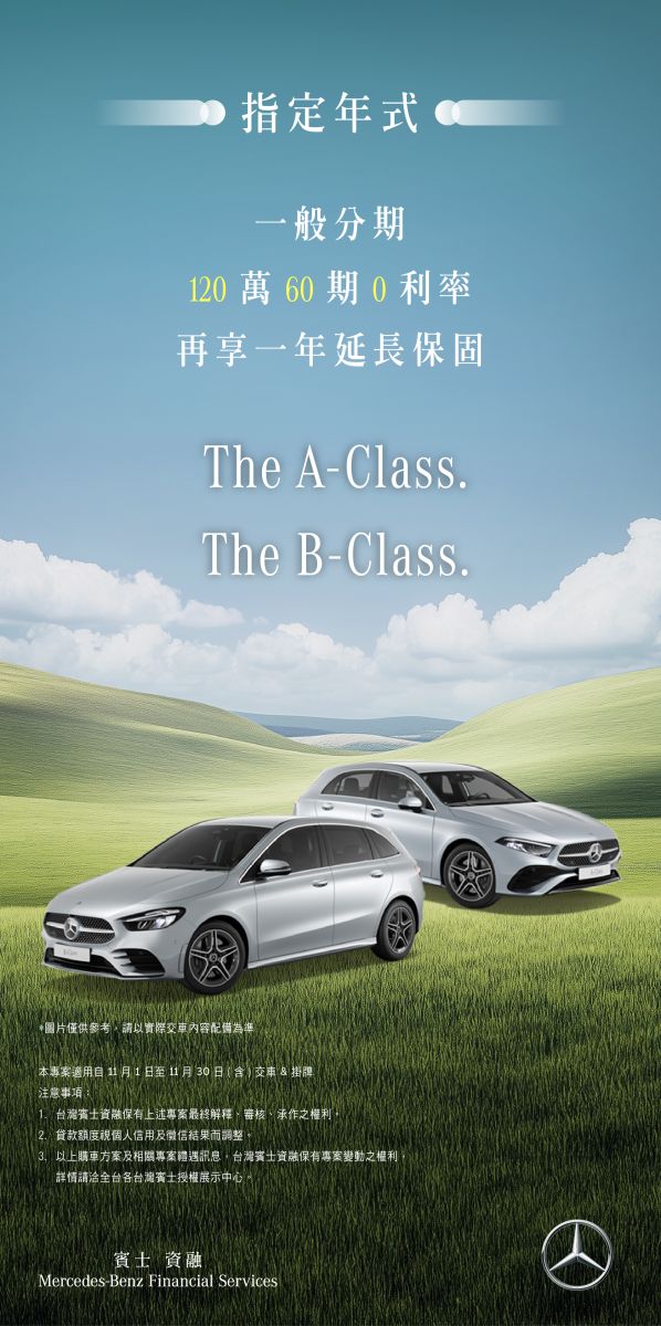 「靈感設計 × 都會節奏,讓駕馭成為風格日常」 The A-Class The B-Class 指定年式 享 120 萬/40 期 0 利率優惠方案
