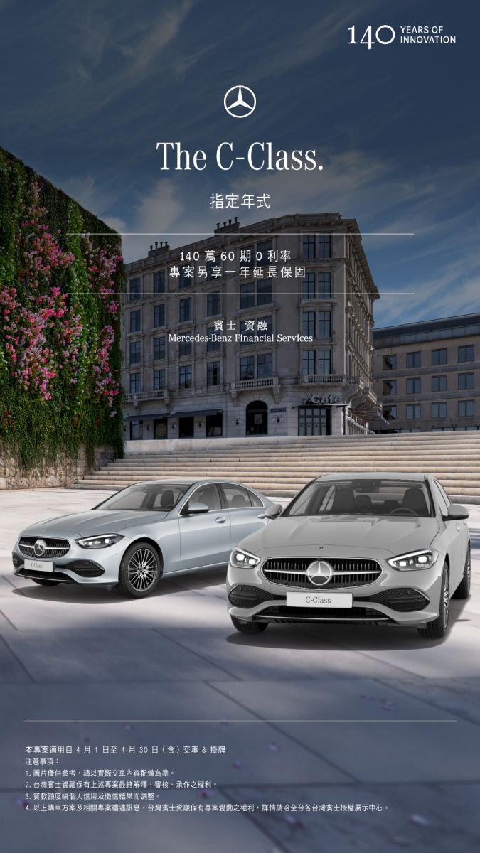 The C-Class 指定年式 享 140 萬/60 期 0 利率優惠方案