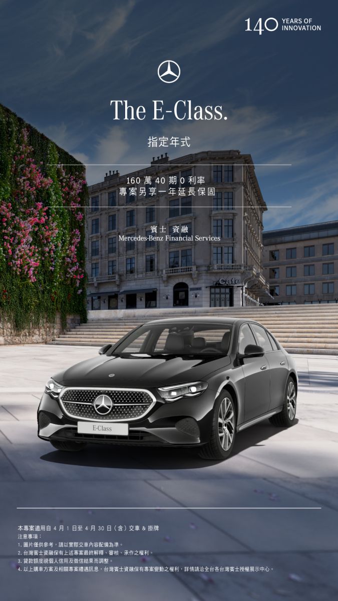 「從容之上,自有境界」 The E-Class 指定年式 享 160 萬/40 期 0 利率優惠方案